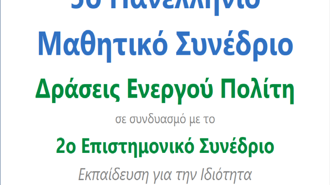 Πρόσκληση για το 5ο Πανελλήνιο Μαθητικό Συνέδριο “Δράσεις Ενεργού Πολίτη” και το 2ο Επιστημονικό Συνέδριο “Εκπαίδευση για την Ιδιότητα του Παγκόσμιου Ενεργού Πολίτη”